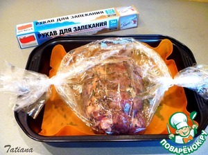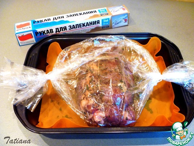 • Промаринованное мясо смажьте растительным маслом, немного посолите снаружи, поместите в рукав для запекания (рукав не прокалывайте).