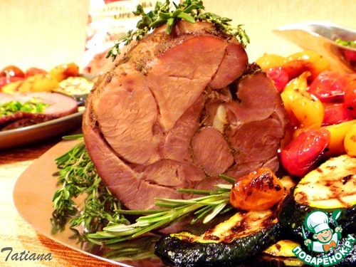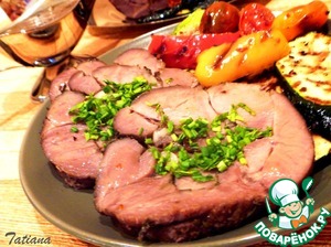 • Готовое мясо выньте из духовки, удалите перевязочный шнур, порционно нарежьте, подавайте с овощами-гриль.