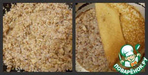 • Гречу отварить до готовности. Все перемешать. Я добавила еще 1 свежее яйцо, чтобы начинка лучше держалась, хотя в рецептуре его не было. Но это по желанию.