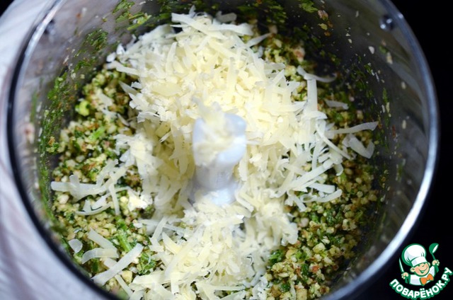 Добавляем натертый сыр. Измельчаем ещё раз.