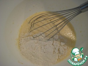 • Для блинов: смешать молоко, яйцо, щепотку соли, сахар и растопленное сливочное масло. Добавить муку, перемешать.