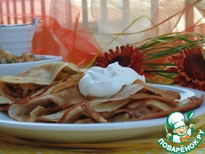 • Подавать блины с начинкой и сметаной. Приятного аппетита!!