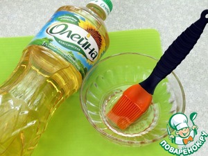 В пиалу наливаем растительное масло для смазывания сковороды и...