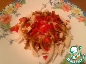 Пикантный салатик из пекинской капусты, куриной грудки, лука, оливок и заправки. Собственно, изначально хотела поделиться не рецептом салата, а интересным способом маринования лука, ну а по ходу дела нафантазировала...)) Маринуя этим способом, всё зло из лука уходит, даже из такого сердитого, как у нас, в Сибири.)) Домочадцам салат пришёлся по вкусу! Буду рада, если и Вам пригодится.