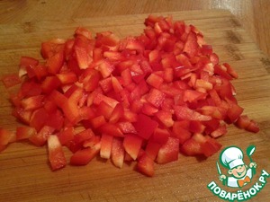 Присыпаем болгарским перцем, и немного сдабриваем соусом.