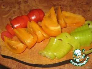 • Помидоры, перчик ломтиками, дольками.