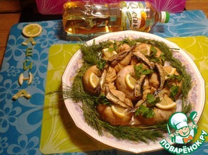 Вот все оформленные бомбочки. Сверху - 1 рыбка шпротинка, четвертьлимончик и зеленушка)