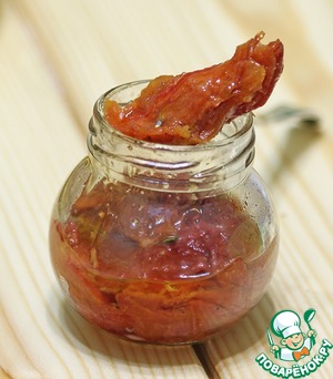Перед подачей в разогретый блин мы добавим пикантности - вяленые помидоры (вот они у меня какие)), а так же немного сбрызнем маслом и присолим по вкусу.