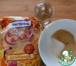 • Тростниковый сахар смешиваем с жуирующей смесью (в оригинале нужно добавить вместо них апельсиновый мармелад, но то что продается у нас в магазинах не похоже на натуральный продукт) Готовим спиртное.