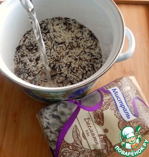 • Стакан риса заливаем двумя стаканами воды. Солим и ставим готовится. Когда воды останется на ровне с рисом добавляем сливочное масло и перемешиваем. Оставляем до полного впитывания жидкости.