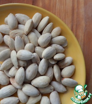 Начнем с подготовки миндаля. Очищаем его от кожуры, и поджариваем (я сделала это в микроволновке на максимальной мощьности 2,5 минуты). Даем полностью остыть.