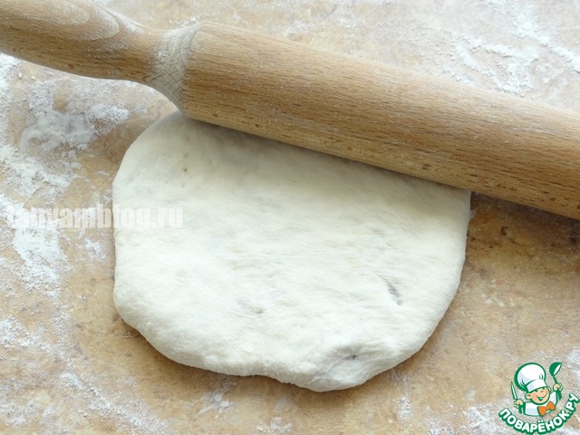 Приготовить тесто (я готовила в хлебопечке), тесто должно получиться в меру крутым, увеличенным в 2-3 раза.