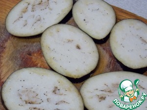 Баклажан нарезать на 6 ломтиков, посыпать солью и оставить на 15 мин.