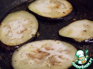Обжарить в масле ломтики баклажанов с 2 сторон по 1 мин.