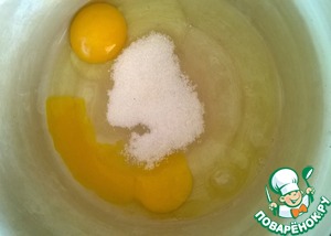 Взбить яйца с сахаром и щепоткой соли.