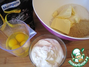 Для капкейков: духовку включим на разогрев t 180-190 градусов. Взобьём миксером мягкое масло и два вида сахара. Продолжая взбивать, введём по одному яйца, далее сметану.