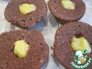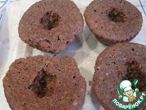 Соберём пирожные: у капкейков вынем серединки (не повредив донышко).