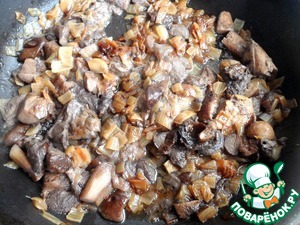 Грибы и лук мелко нарезать и обжарить до готовности на растительном масле.