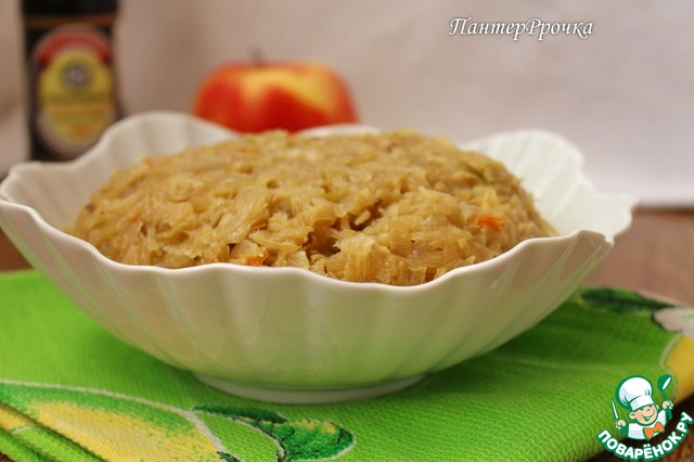 Катюша,интересное сочетание квашенной капусты и яблока,думаю гарнир получился вкусный))) Возьму рецепт на заметку)))