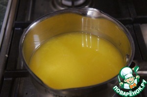 За 10 минут до готовности пирога сделать пропитку. Для этого из оставшихся 2-х апельсинов выдавить сок, смешать его с сахаром в небольшой кастрюльке, помешивать на медленном огне, пока сахар не растворится.