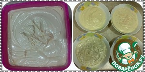 Каждую часть выпекать 15-20 мин при температуре 180градусов. Немного остудить и каждый бисквит разрезать пополам. Итого у Вас получится 4 коржа. (У меня их было 8)