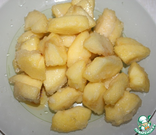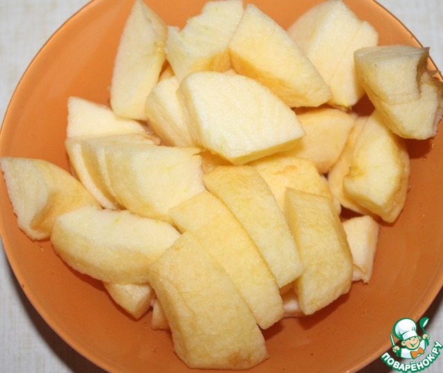 Яблоки почистить, вырезать сердцевину и нарезать на дольки