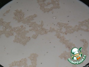 В молоко добавить соль по вкусу, залить им курицу с рисом, поставить в разогретую до 250 градусов духовку.