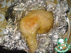 Куриный окорочок натереть солью и приправами для курицы, завернуть в фольгу и запечь в духовке, можно его конечно отварить, но вариант с запекание мне нравиться больше.