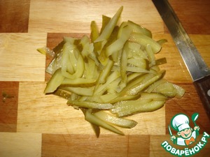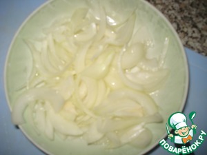 Половину лука нарезать полукольцами и залить соком 1/2 лимона дать постоять 10-15 минут.