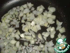 Вторую половину лука нарезать кубиками и обжарить в небольшом количестве масла.