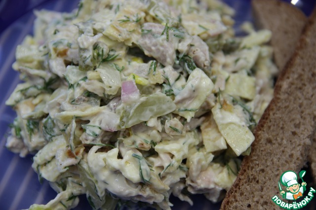 Все ингредиенты смешать, посолить, заправить майонезом.