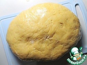 Готовое тесто оборачиваем пищевой пленкой и оставляем на полчаса при комнатной температуре.