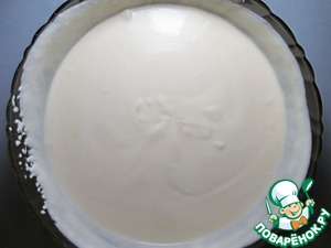 В результате во время сборки торта весь "крем" стек на тарелку, и между коржей почти ничего не осталось. Половина "крема" осталась в кастрюле, так как выливать было уже некуда.