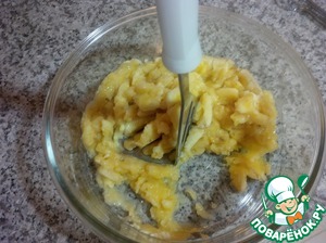 • Банан превращаем в кашицу. Можно толкушкой, можно блендером.
