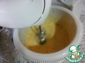 • Добавляем яйца к нашей смеси. Очень хорошо все взбиваем до абсолютно однородной массы. Сейчас лучше всего включить духовку и разогреть до 180С, а также смазать маслом форму, чтобы все было готово для выпекания.