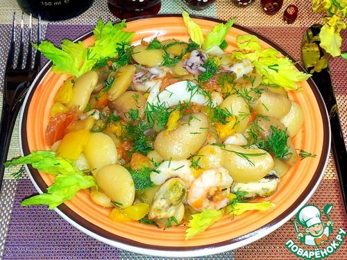 Рецепт «Белая фасоль с овощами и морепродуктами»:
