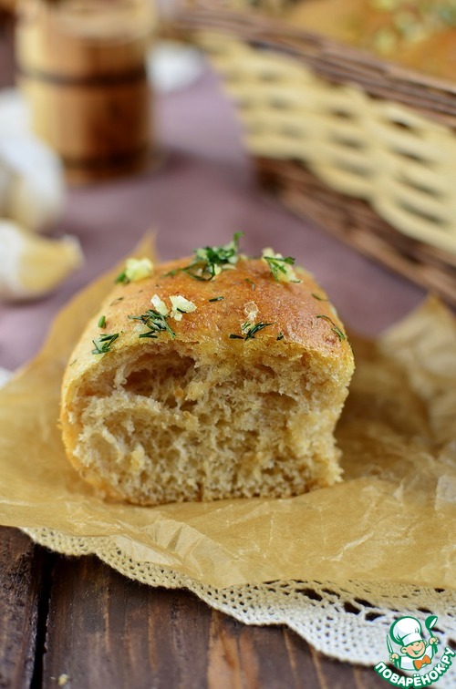 Достаем булочки из духовки и сразу, пока они горячие, обмазываем чесночным оливковым маслом. Ароматы при этом витают невероятные!