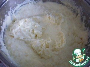 Готовое картофельное пюре с молоком горячим и растопленным сливочным маслом.