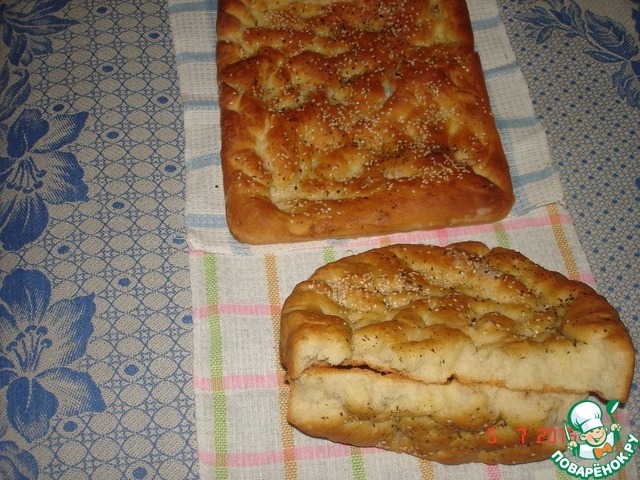 Испекла!!!!! Замечательная, вкусная, ароматная фокачча получилась!!! Моя лучшая половинка в восторге!!!