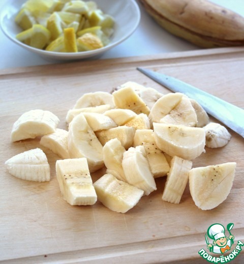 Очистить и нарезать бананы.