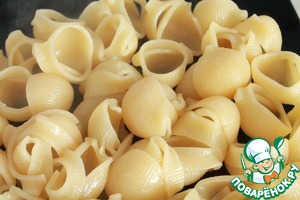В кипящую воду добавляем соль и немного растительного масла. Затем макаронные изделия. Варим почти до готовности, но не развариваем.