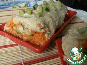 Нежный рулет из фасоли с начинкой из моркови и огурчика, который можно подать как закуску или легкое самостоятельное блюдо