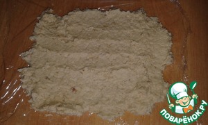 На пищевую пленку выложить прмяугольником фасолево-луковую пасту
