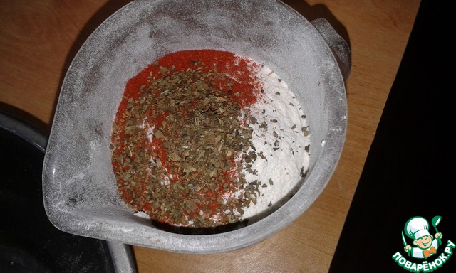 В муку добавить паприку и базилик и просеять