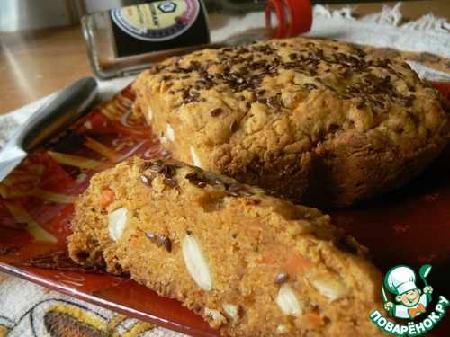 Сверху посыпать семенами льна. Выпекать около 40 минут при 175 градусах. Я готовила в хлебопечке на режиме "Выпечка"