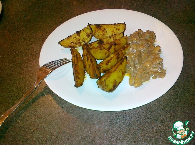 Рецепт «Говядина по-строгановски и пататас бравас»: