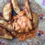 В представленном видеорецепте я не стал готовить картошку во фритюре (не люблю лишний жир) и вместо острого соуса просто добавил при запекании паприку и острый перец.