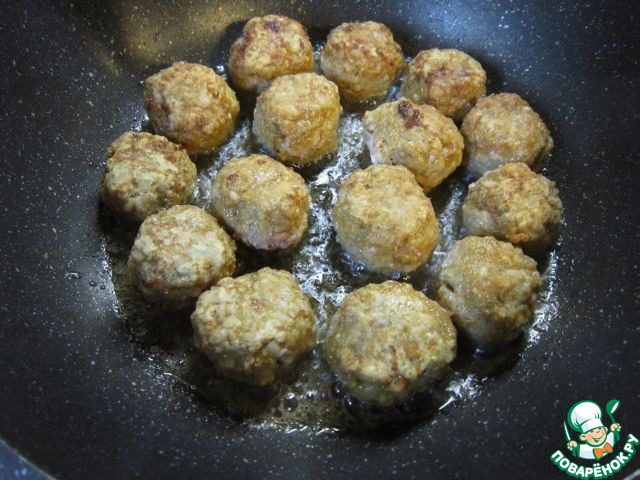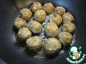 Фрикадельки обвалять в муке и обжарить на растительном масле.