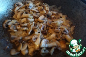 Рабочую поверхность смазать растительным маслом. Каждую часть теста аккуратно, руками разровнять в лепешку. В середину положить грибы и собрать тесто в мешочек, слепить, и снова разровнять руками в лепешку. Тесто очень мягкое и нежное, поэтому скалкой лучше не работать.