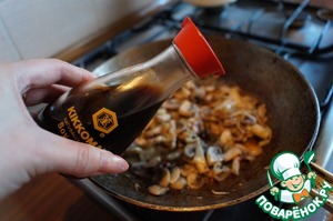 Добавить соевый соус по вкусу и специи. Готовую начинку остудить.